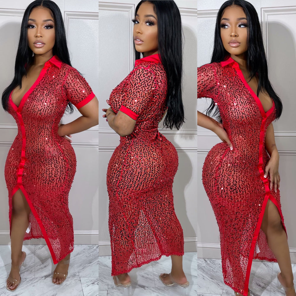 Sequin Shirt Dress Red