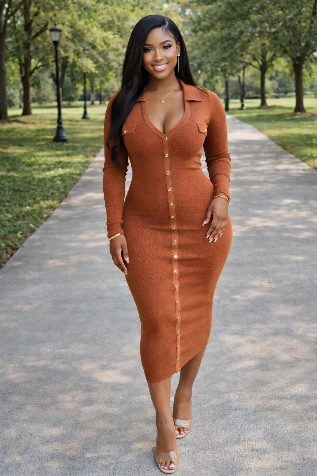 Classy Ribbed Midi Caramel