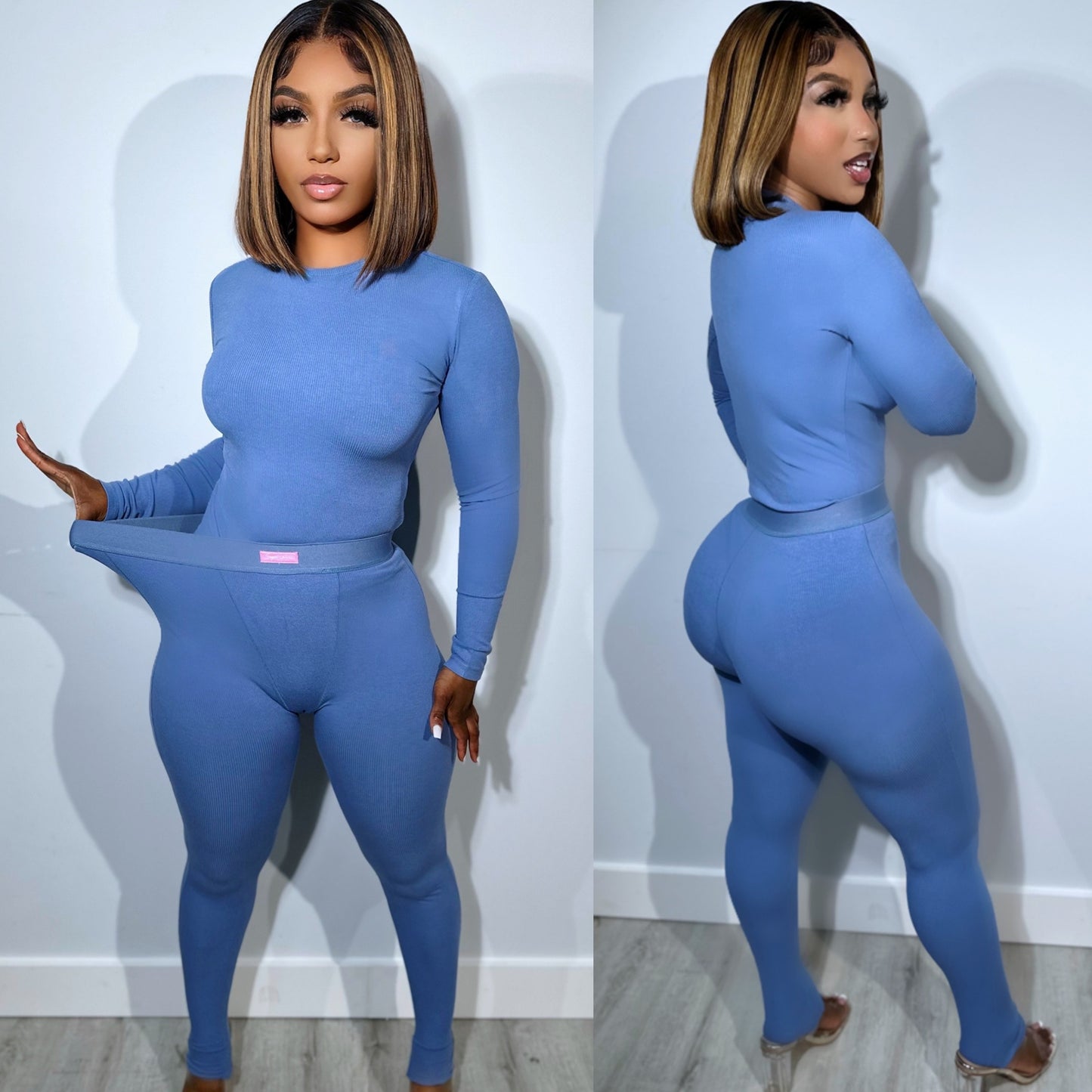 Dream Ribbed Legging Set Blue