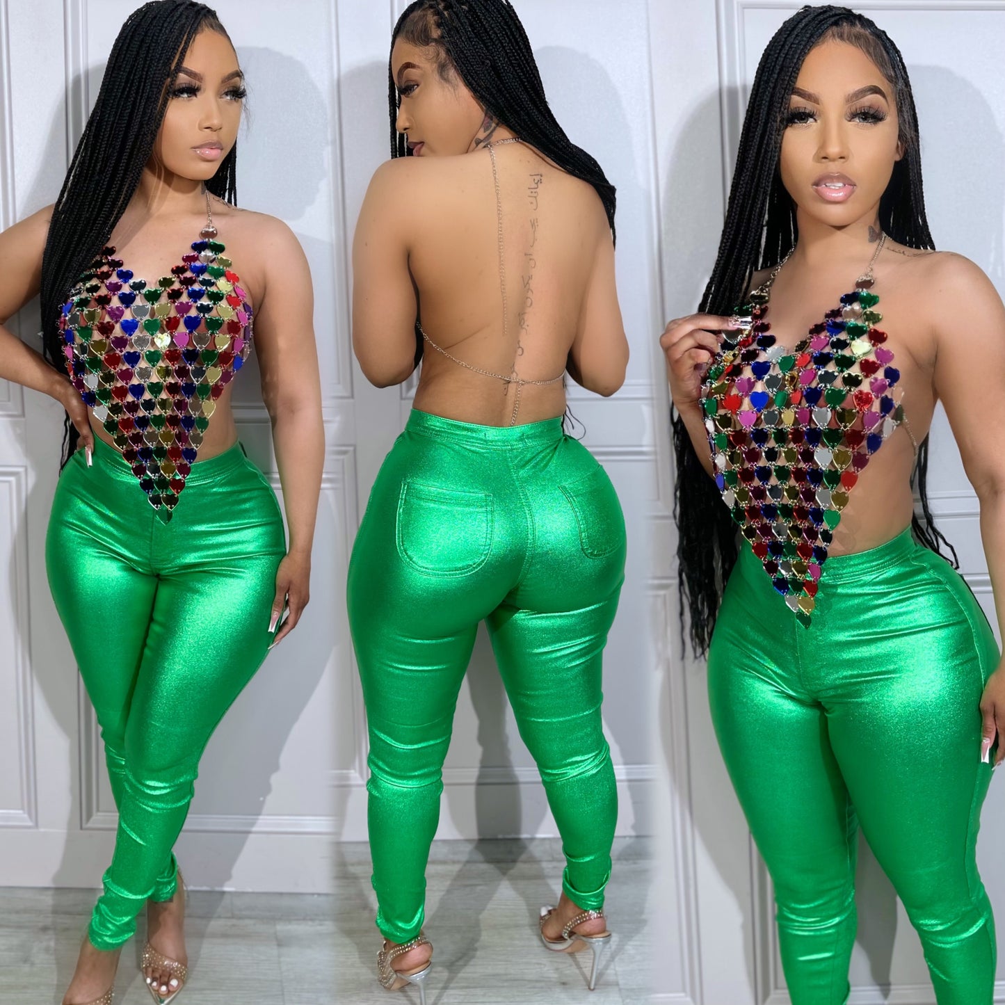 Metallic Jeans Green